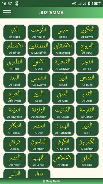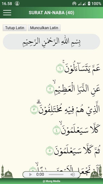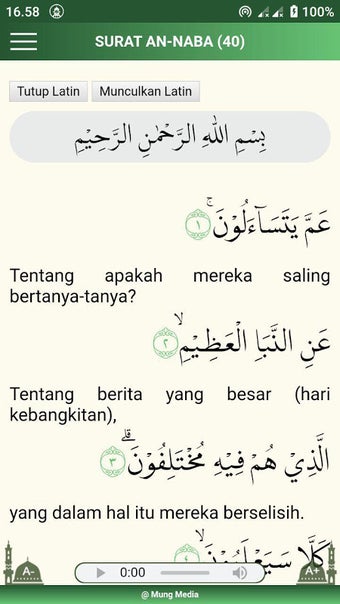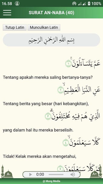 Daarnaast bevat de applicatie online audio van Syech Nabil Ar Rifay, wat een waardevolle aanvulling is voor diegenen die hun memorisatievaardigheden willen verbeteren. Dankzij de toegankelijkheid van de audio kunnen gebruikers de inhoud op elk moment en op elke locatie beluisteren, wat het leren en onthouden van de teksten vergemakkelijkt. Deze combinatie van functies maakt de app een handige tool voor iedereen die zich wil verdiepen in Juz Amma.